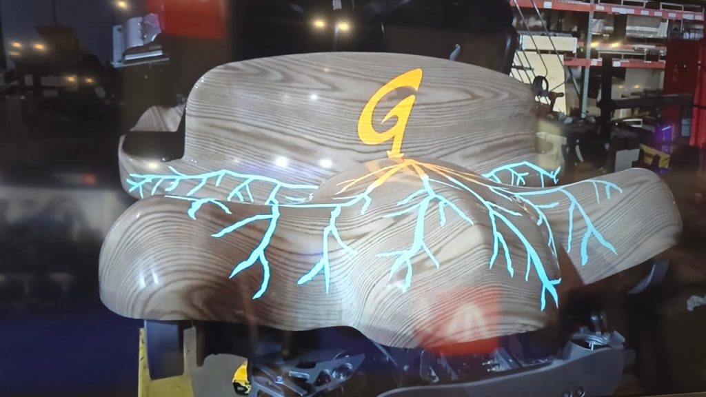 Also present without fanfare but totally cool was Gravity Group’s new train concept. During the daylight it looks wooden, but at night it has hidden paint under the overlay that lights up from an onboard battery.