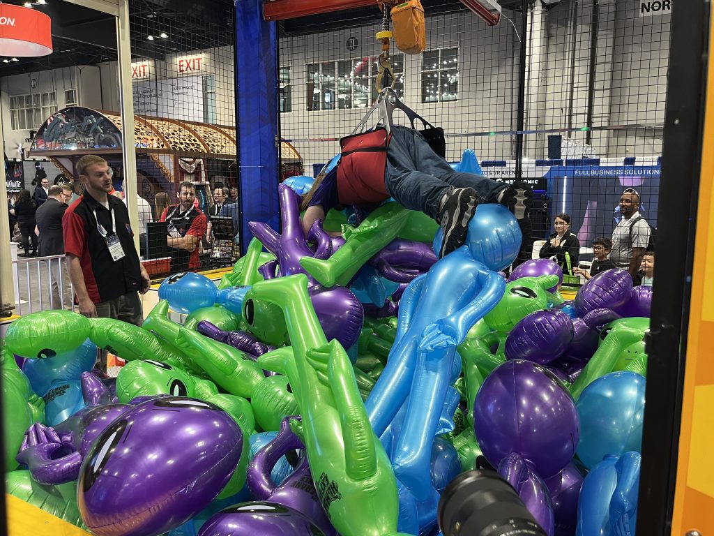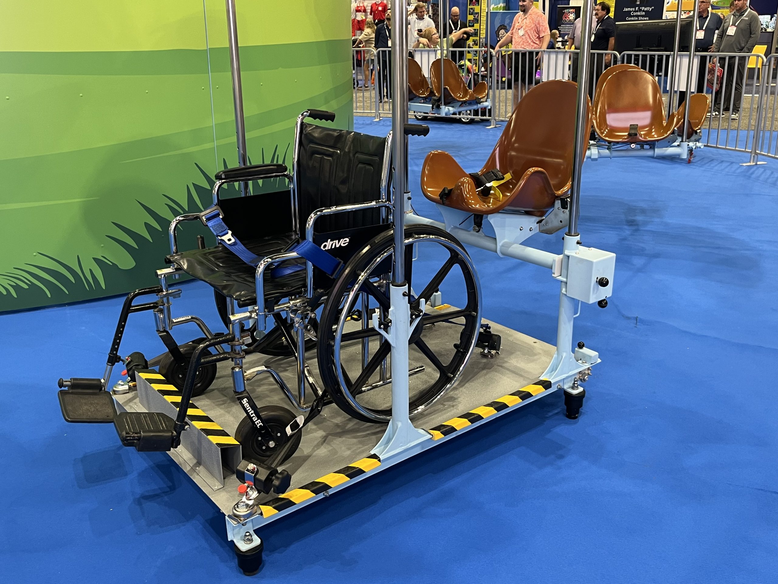Zamperla‘s booth and announcements never disappoints. This year, they unveiled a tower ride where riders flap their arms to make the gondolas go up or down. It’s also wheelchair accessible. Wingz will open at Morgan’s Wonderland in 2026.