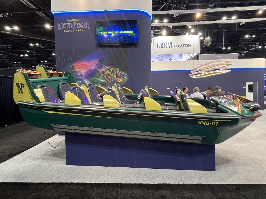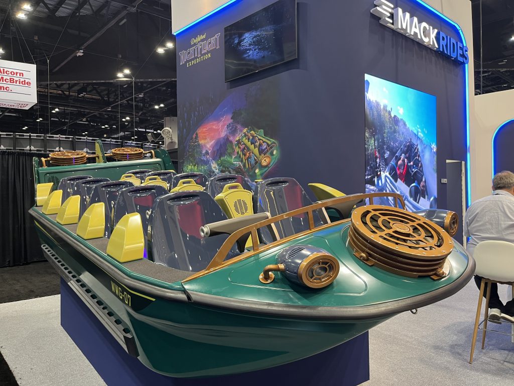 Mack Rides and Dollywood had the first slot of the event, revealing the ride vehicle for NightFlight Expedition, a coaster, water and dark ride all rolled into one. This unique storytelling attraction will open in Spring 2026.
