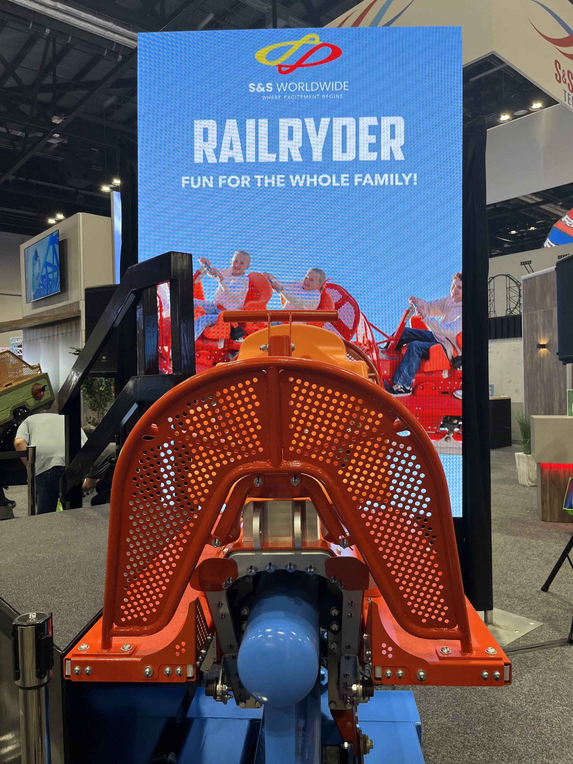 S&S revealed RailRyder, a very orange and new version of their Steeplechase coaster type. Other colours will presumably be available including tangerine, apricot and pumpkin.