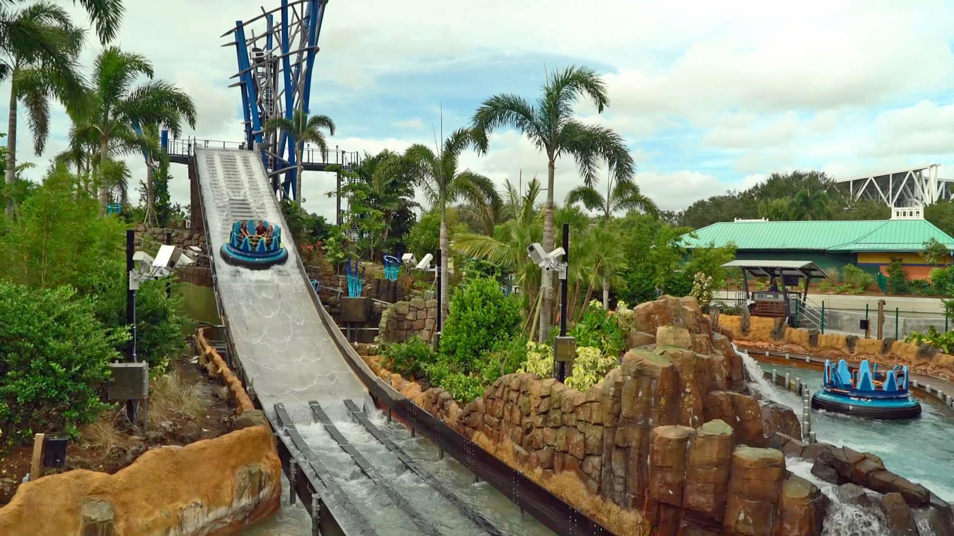Located between the Mako roller coaster and Shamu Stadium, Infinity Falls is the last ride to open this year for SeaWorld Entertainment, which has 12 theme parks across the USA. Ray Rush, the new water slide at Aquatica, SeaWorld’s Orlando water park, debuted in May. Although no exact reason was given, several factors, including weather and parts being shipped from Germany and Switzerland, contributed to the delay according to SeaWorld senior director of theme park development Jeff Hornick.